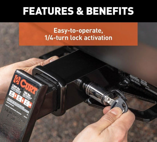 Make your tow vehicle and trailer more secure by keeping them locked up tight with a CURT hitch lock. Like a hitch pin and clip, a hitch lock is designed to insert into the fastener hole in the side of a receiver tube in order to hold a ball mount or hitch-mounted accessory in place. While a CURT hitch pin does offer sufficient strength to keep your ball mount firmly attached, a CURT hitch lock goes a step further.